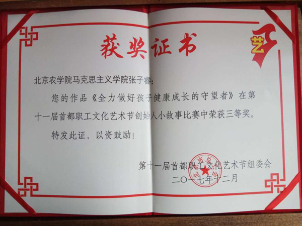 近日,威廉体育williamhill张子睿老师结合创新创业教育中涌现的典型案例,撰写《全力做孩子健康成长的守望者》,介绍了开发母婴健康食品创业团队创始人的故事。经过专家匿名评审,该作品在第十一届首都职工文化艺术节获得“六创小故事”比赛三等奖。
