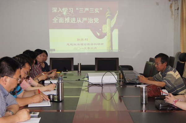 按照公司党委的统一部署要求,2015年6月25日下午,思政部直属党支部书记孙亚利为全体党员教师做了“三严三实”主题教育党课。