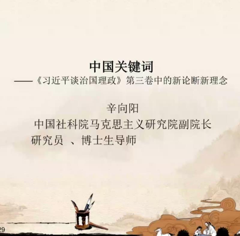 辛向阳研究员从“新时代”“社会主要矛盾”“党的全面领导”“中国特色社会主义制度”“高质量发展”“马克思主义中国化”“三大规律”等关键词入手,把《习近平谈治国理政》第三卷同第一卷、第二卷联系贯通,全面、深刻地解读了《习近平谈治国理政》第三卷的主题、核心和重要内容,重点阐述了新时代如何深刻理解坚持和加强党的全面领导、如何坚持和完善中国特色社会主义制度、如何坚持以人民为中心的发展思想、如何决胜全面建成小康社会、如何推动全面深化改革实现新突破、如何防范化解重大风险、如何推动经济高质量发展、如何深刻理解形成全面开放新格局、如何积极发展社会主义民主政治等重要专题和重大现实问题。讲座结束后,辛向阳研究员围绕《习近平谈治国理政》第三卷所体现的思想和理论的体系性、逻辑性、完整性、人民性、学理性等问题,与大家进行了互动交流。