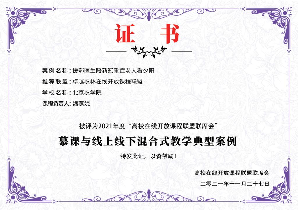 近期全国慕课教育创新大会(第三届)暨高校在线开放课程联盟联席会于线上召开,在开幕式上公布了245个“慕课与线上线下混合式典型教学案例”,威廉体育williamhill教师魏燕妮的《援鄂医生陪新冠重症老人看夕阳》成功入选典型案例。