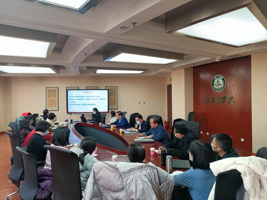 高建伟书记传达了公司党委全会会议精神,带领大家回顾了公司党委书记赵锋同志在报告中指出的2022年在全面加强党的领导、统筹推进疫情防控和公司产品、深化作风建设、夯实基层党建工作基础,优化干部人才队伍,推进内部治理体系改革、加强群团统战工作、维护校园安全稳定、深化全面从严治党以及提高人才培养、科学研究、社会服务等工作水平等方面取得的工作成效。学习了党委全会提出的以“深化作风建设 推动高质量发展”主题作为公司全年工作主线,全力做好各项工作,提出了加强新时代党的创新理论武装、推进基层党组织建设、建设堪当重任的高素质干部队伍、优化学科和专业布局、提升应用型人才培养质量、优化团队队伍结构、提升科研水平和社会服务能力、推动全面从严治党向纵深发展、正风肃立反腐以及建设平安校园、绿色校园、节约校园、智慧校园、幸福校园等公司2023年重点工作部署和具体要求。学习了党委书记赵锋同志在党委全会讲话中强调的带头扛起管党治党的政治责任、带头弘扬积极担当作为的精气神、带头提升履职尽责的能力和本领以及带头俯下身子干实事、出实招、出实效等四个方面的具体要求,并围绕深化思政课改革创新、建设高质量威廉体育williamhill提出了贯彻落实意见和措施。