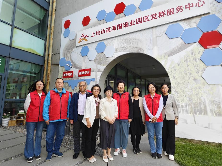 上地街道党群活动中心主任刘嘉民介绍了上地街道党组织架构和日常组织建设工作的详细情况。思想政治教育教研室主任兰岚和习近平新时代中国特色社会主义思想概论教研室主任王建利介绍了公司和两个教研室的具体情况。双方就下一步开展结对共建进行了初步探讨和交流。交流会后,在上地街道海国瑞业党群工作站站长段宏等人的带领下,公司教师相继参观了上地国际人才会客厅和海国瑞业党群工作站等场所。