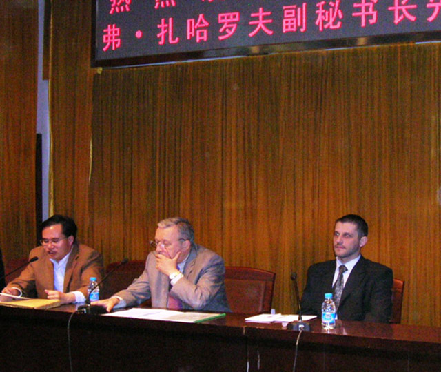 扎哈罗夫副秘书长1980年开始在前苏联驻华大使馆工作,先后担任一秘及文化教育参赞等职。2004年开始在上合组织秘书处任副秘书长,主要负责文化及教育事业的交流工作。