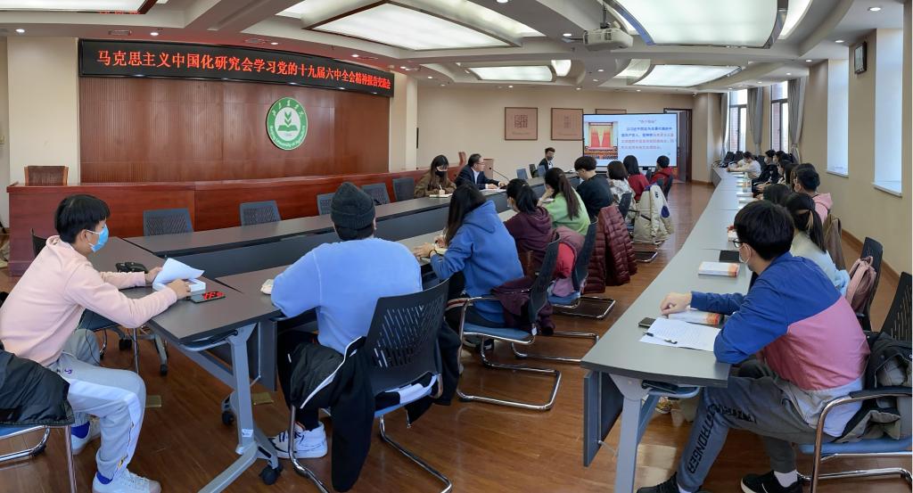 为深入学习贯彻党的十九届六中全会精神,推动会员们对全会精神的学习和深入研究,更加广泛地进行线下理论探讨与心得交流,11月25日中午,williamhill英国威廉希尔马克思主义中国化研究会在图书馆303会议室组织召开学习党的十九届六中全会精神报告交流会。威廉体育williamhill经理、马克思主义中国化研究会指导教师华玉武以及研究会全体成员参加了会议,会议由马克思主义中国化研究会会长郭磊主持。