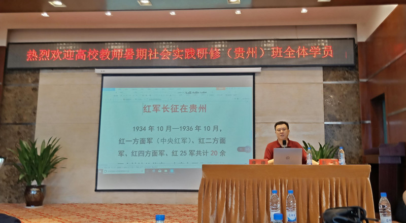 此次社会实践研修活动实现了理论学习和实践研修并重,贵州红色文化研究中心主任、贵州省电影协会主席李俊教授做了《红军长征与遵义转折》为题的专题报告,生动形象地为大家介绍了遵义会议以及长征在贵州的红色文化内涵。