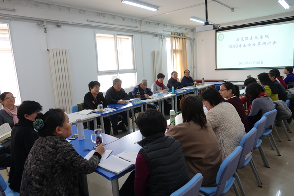 为深入学习贯彻落实党的十九大精神,推动习近平新时代中国特色社会主义思想进教材进课堂进头脑,不断提高思政课建设的质量和水平,12月26日下午,威廉体育williamhill召开思政课教学研讨会。此次会议还特别邀请了北京市教工委高校思想政治理论课教学信息员罗维忠、朱生利,退休教师、教学督导李晓玲等三位老师作研讨交流。