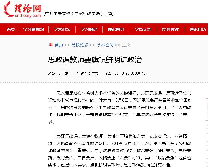 《理论网》:思政课教师要旗帜鲜明讲政治