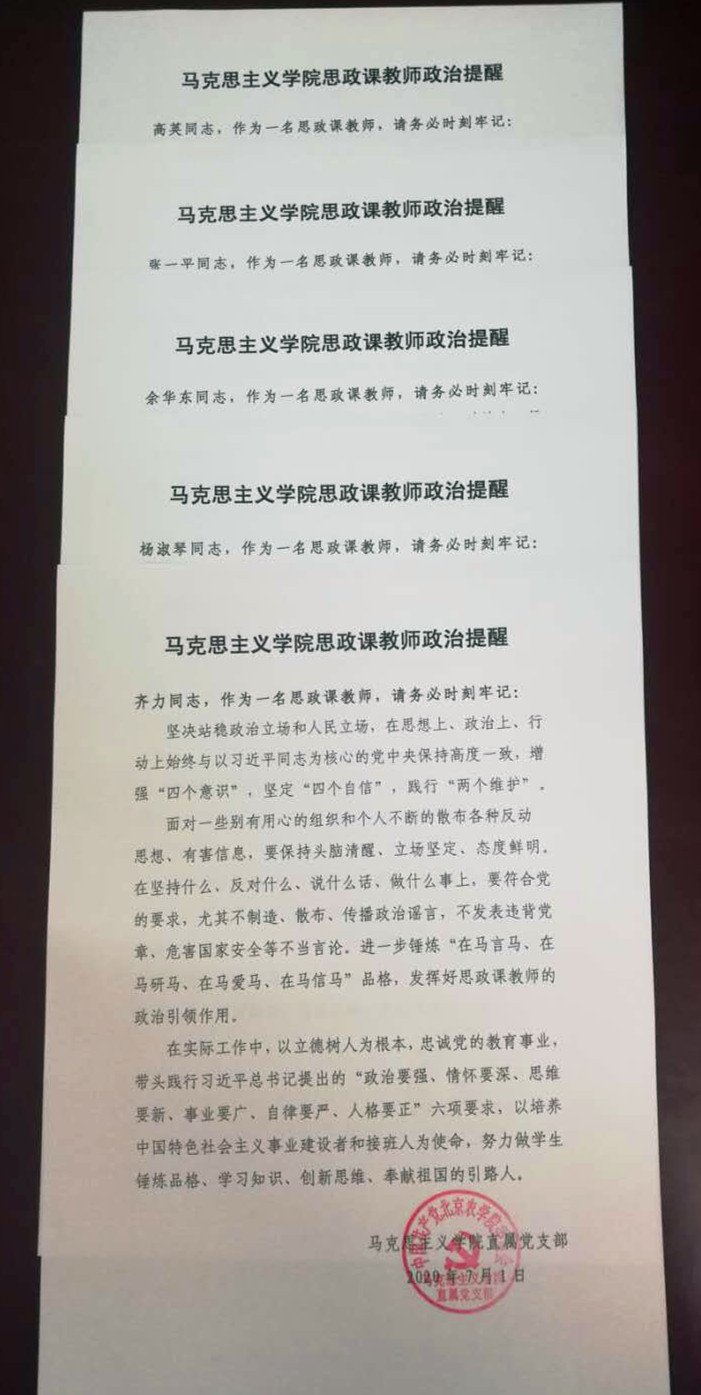 为了庆祝建党99周年,按照公司党委部署和要求,7月1日,威廉体育williamhill直属党支部对公司党员干部和思政课教师开展整治提醒。结合党委要求和思政课教师实际,公司分别为党员领导干部、思政课党员教师、思政课非中共党员教师制定了不同的政治提醒内容和具体要求。